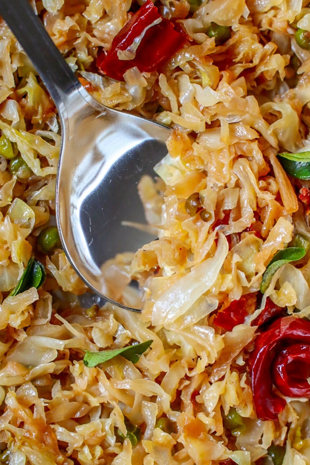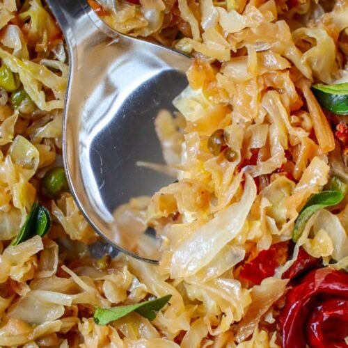 This easy South African braised cabbage and peas recipe is a simple, flavourful side dish made with sliced cabbage, onions, dried red chillies, and baby peas. Slowly cooked until tender and lightly golden, this comforting dish is commonly served alongside rice, roti, dhal, or curry in many South African homes.