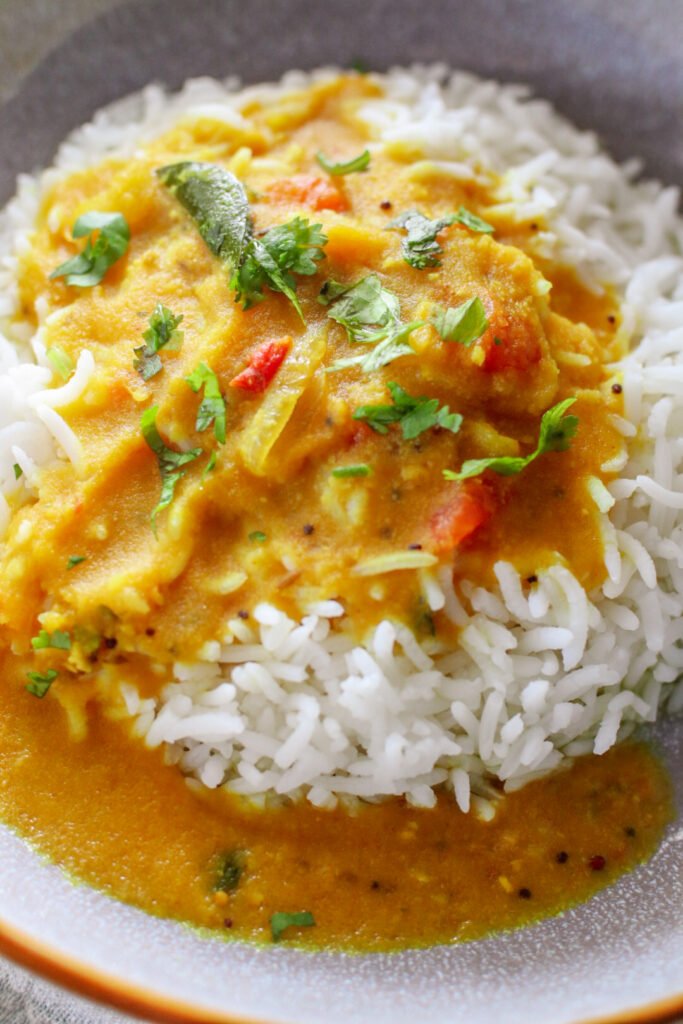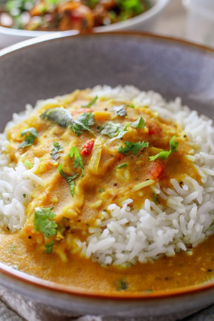 Vadouvan (optional): Vadouvan is a mild curry spice blend with dried onions and garlic that adds savoury depth. The dhal is still delicious without it.