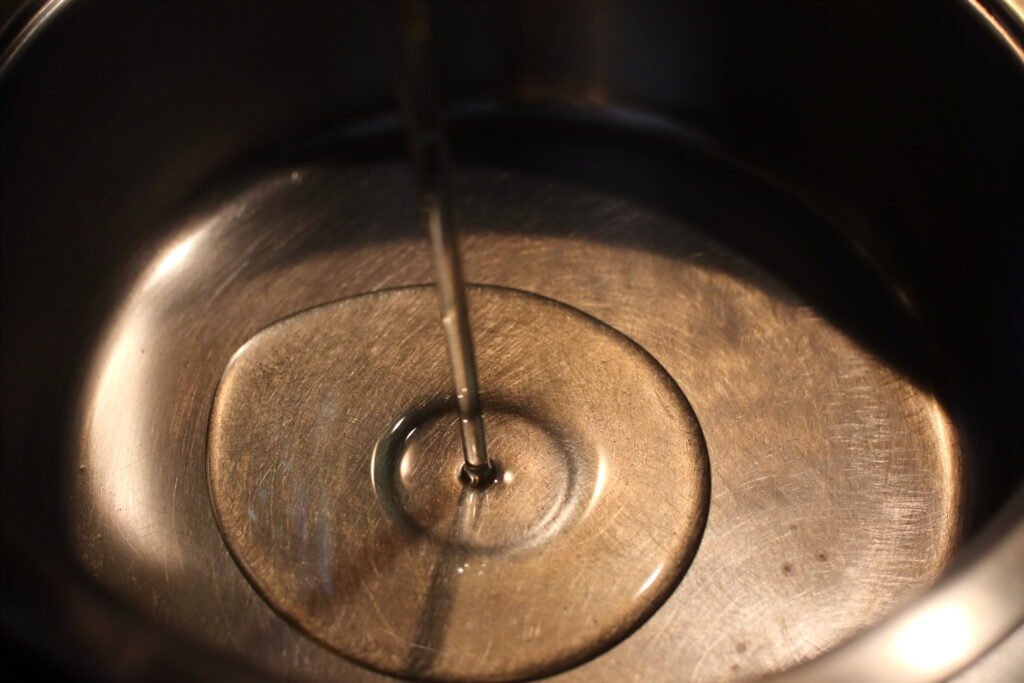 - Heat the vegetable oil in a medium size high pot over medium heat.