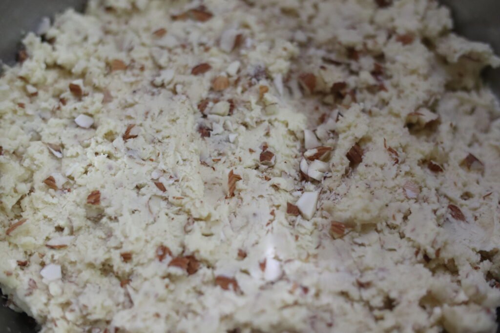 - Fold in chopped nuts, ensuring even distribution without breaking the dough.