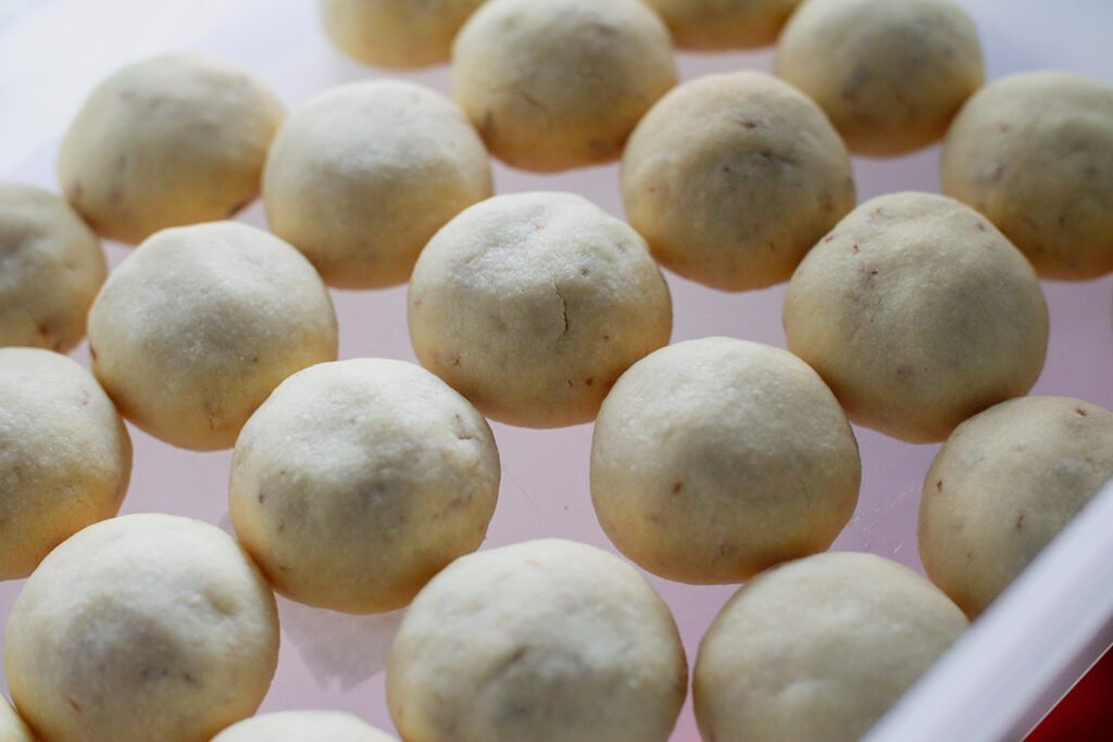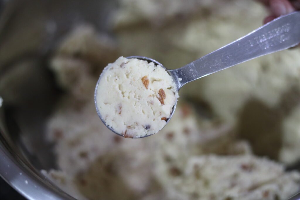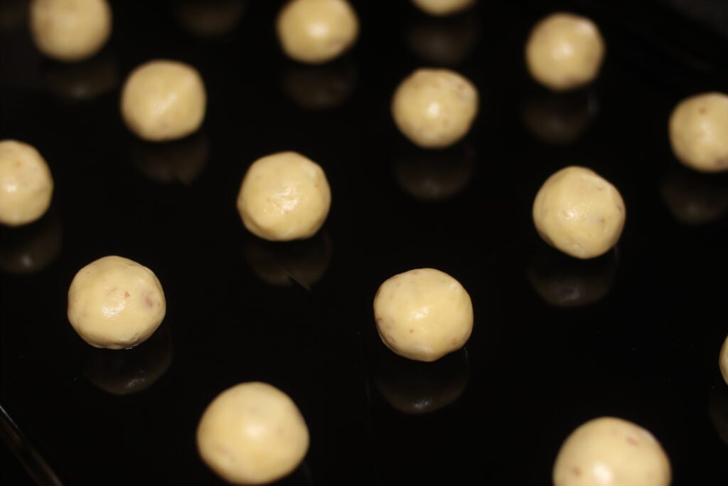 - Scoop one tablespoon of dough and starting shaping it into small balls.