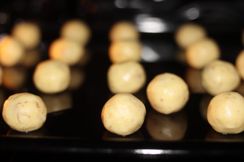 Roll the dough into small balls (amount of 1 tablespoon). If you feel that the dough it too soft, you can chill the dough in plastic wrap for 25-30 minutes in the fridge/freezer as they will be easier to shape before baking them. These is really helpful especially if you are residing in a location that has really hot temperatures.