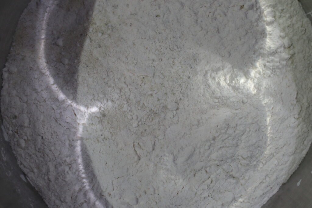 - In a large bowl, mix the self-raising flour, semolina, baking powder, bicarbonate of soda, and cardamom powder.
