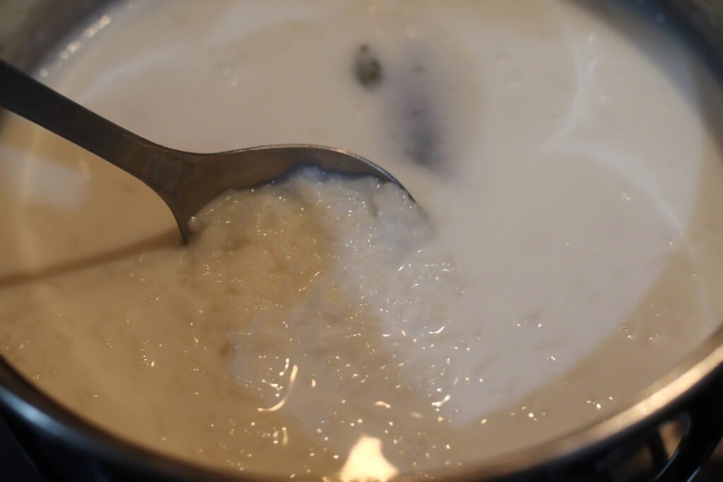 - Boiling water – Helps soften the rice before the milk goes in. Starting with boiling water speeds up cooking and ensures even texture.