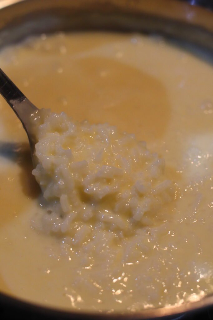 - White rice – White rice is the heart of this dish. Traditionally, short- or medium-grain rice is best because it releases more starch, giving the pudding its signature creaminess. Make sure to rinse it until the water runs clear to remove excess starch. This will help to achieve a smooth and creamy texture.