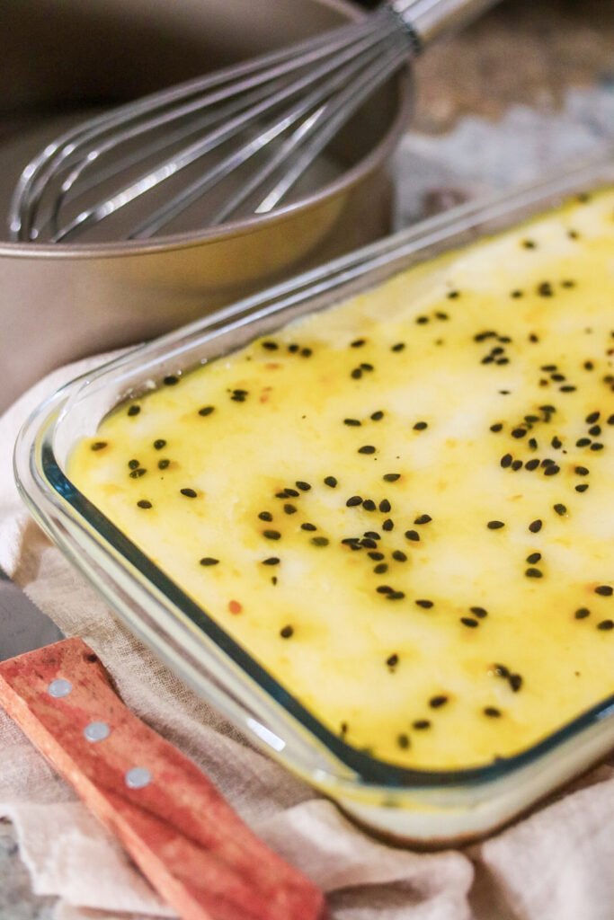 • Before serving, spoon the granadilla (passion fruit) pulp over the top to decorate.