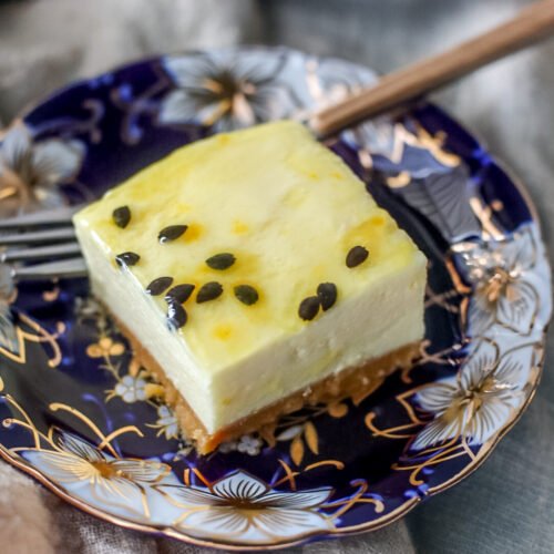 Because this is a no-bake cheesecake, it works especially well in warm weather. You can prepare it ahead of time, leave it to set overnight, and focus on other things. The texture stays light, the base stays firm, and the granadilla topping adds just the right amount of freshness.