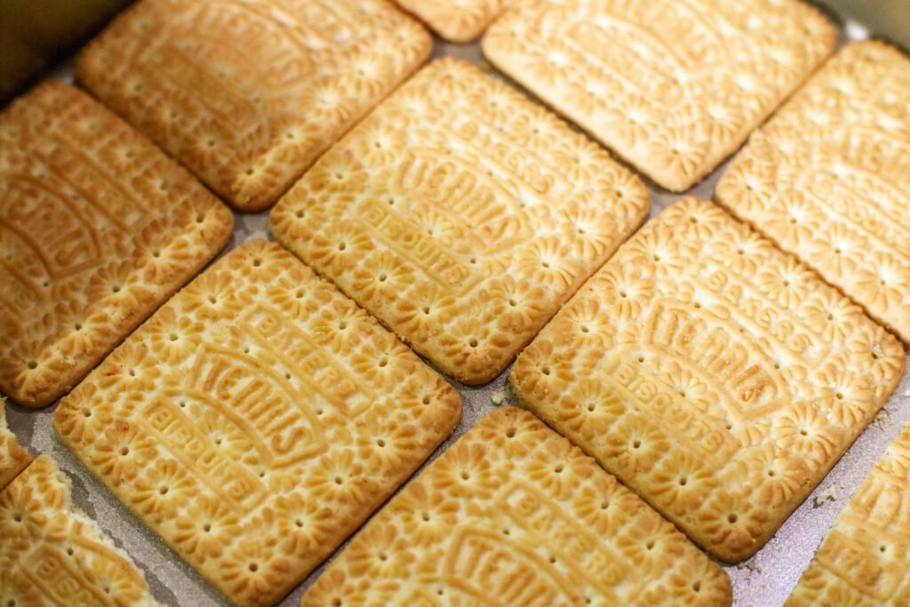 - Lightly press the biscuits into the cream so they soften without losing their layered appearance.