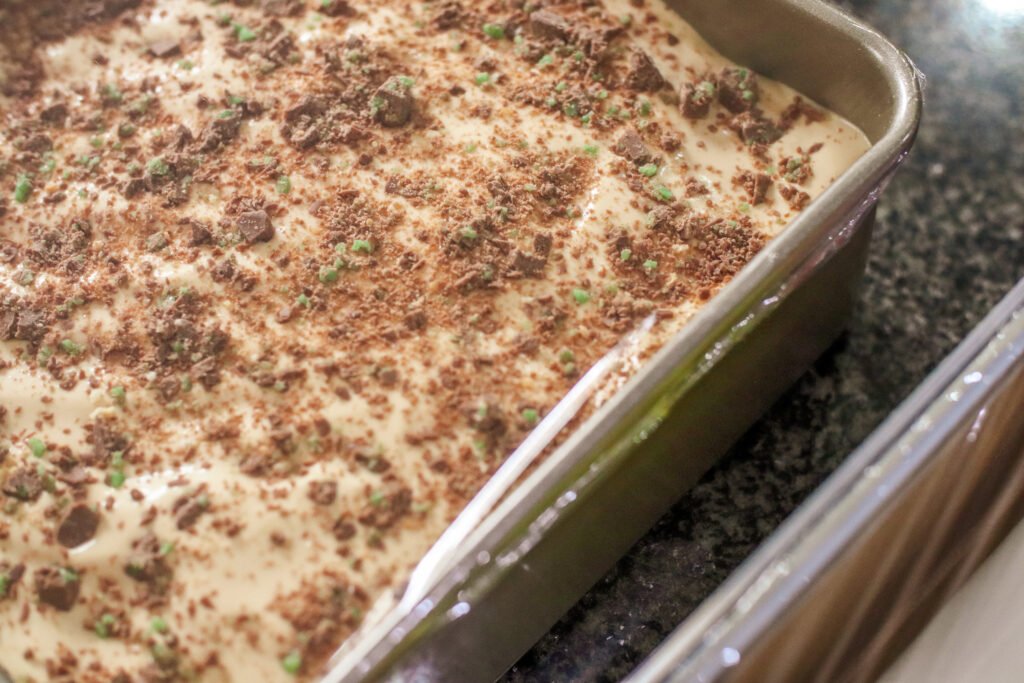 3. Sprinkle chopped Peppermint Crisp chocolate on top.