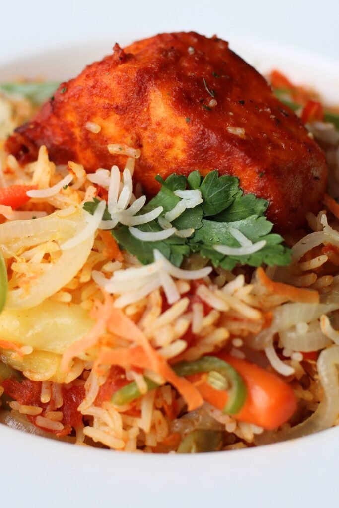 This indian salmon rice bowl is a flavour-packed, comforting meal inspired by classic South African Indian home cooking. The salmon is marinated in Indian spices, then pan-fried to tender perfection. The rice is a vibrant, spiced two-pot style with turmeric and mixed vegetables. It is perfect for weeknight dinners, family lunches, or anytime you crave Durban flavours.