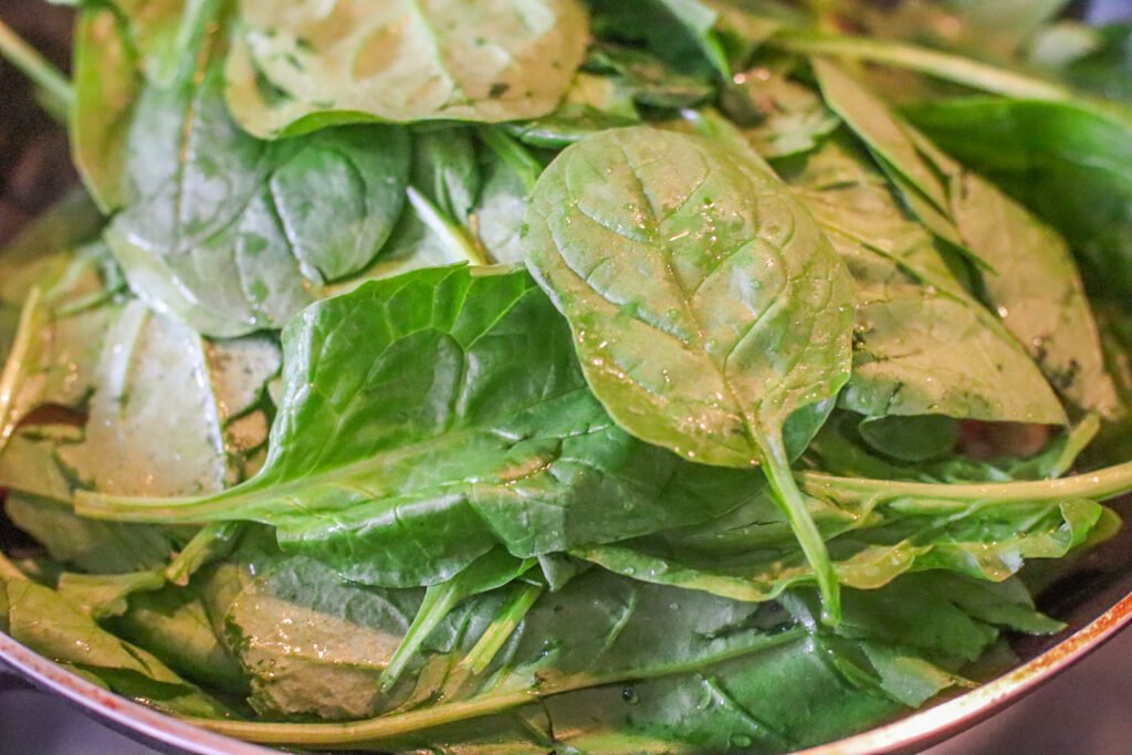Step 6: Wilt the spinach