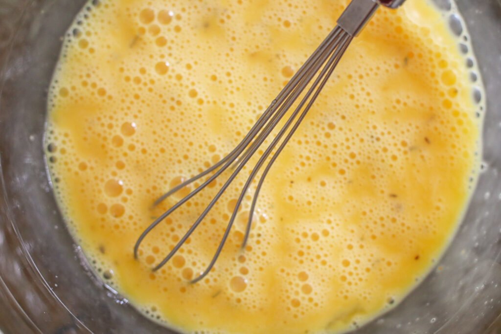 In a separate bowl, whisk the eggs with salt and mixed herbs until just combined. Set aside.